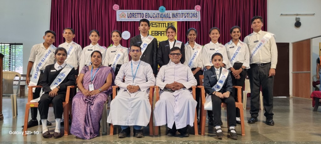 The investiture ceremony of the School Cabinet was held at Loreto English Medium High School here on 20th June 2023 in the School Auditorium. The programme commenced with arrival of Rev Fr Francis Crasta, The Correspondent, Rev Fr Jason Monis The Principal.
