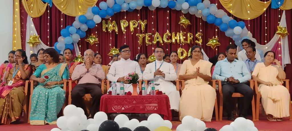 Loretto Sep 6: “Guru Namana” the teachers day celebration was held with love and respect at LEMHS here at Loretto. In collaboration with the Kannada Medium the English Medium High School Management Committee, Parent Teacher Association and the Students of both the school made the day memorable one. In the morning hours the various games and activities were conducted at the school ground. The children cheered the teachers and teachers became students at once in the ground. After the food the programme was arranged in the Loretto Auditorium. Rev Fr Francis Crasta presided the function. The programme began with the prayer dance and lightening the lamp and offering the flowers to the portrait of Dr Sarvapalli Radhakrishnan. The mementos and the prizes were distributed to the teachers. Correspondent in his speech highlighted the importance of the teacher and specified what is the role and duty of a teacher. He elaborated with the story of Ekalavya and Dhronacharya. Rev Fr Jason Monis Principal LEMHS, Sr Idoline Rodrigues Headmistress Kannada Medium, Mr Cypriyan Dsouza, Vice President Parish Council, Mr Sachin Noronha PTA Vice President were present on the dias. The management committee and Parent Teacher Association members and parents were present for the function.