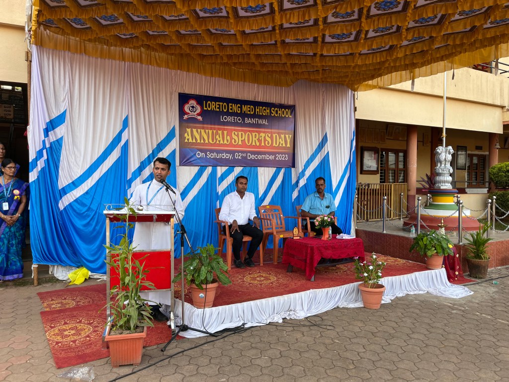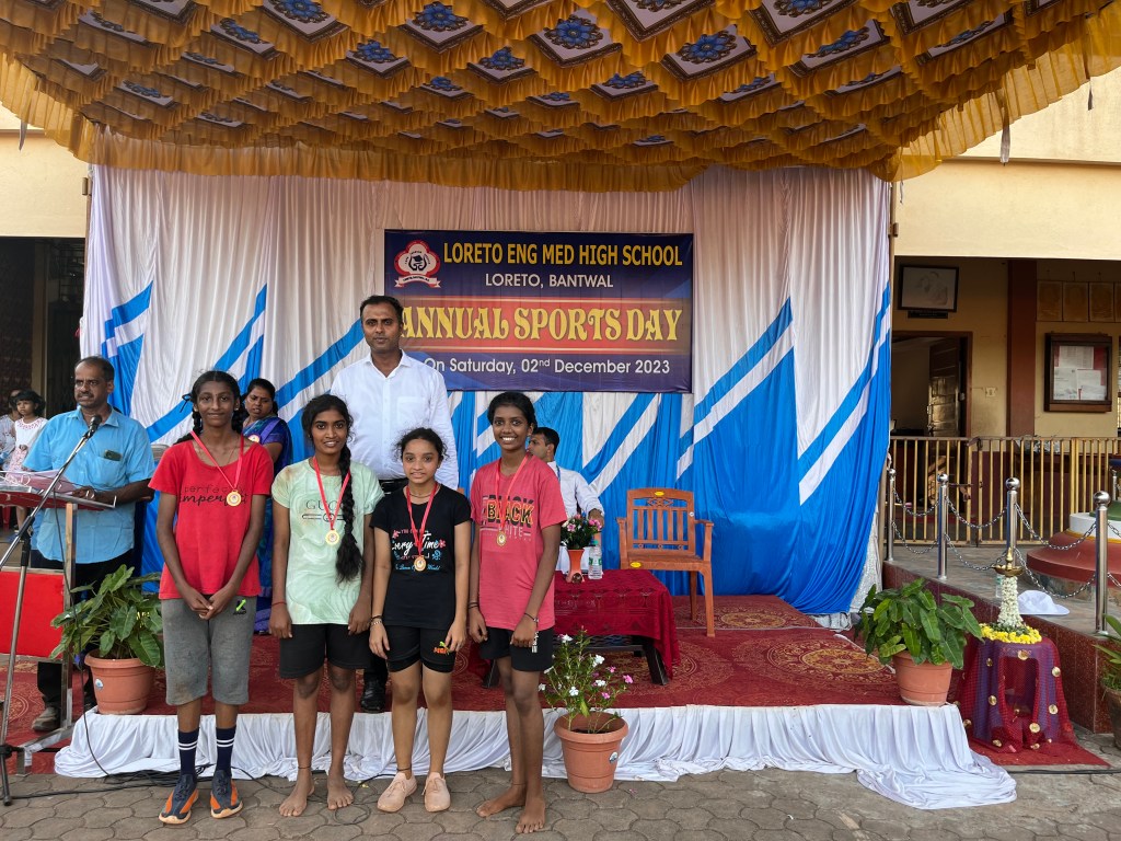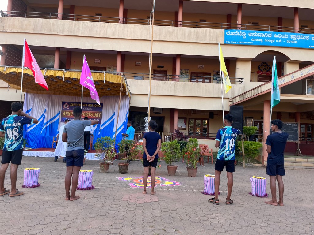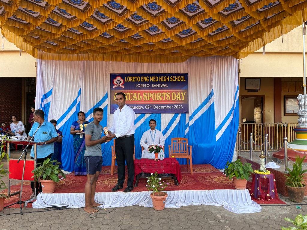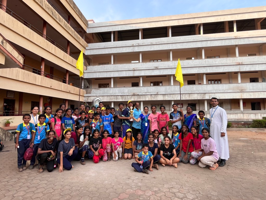 The day continued with the students taking part enthusiastically in various field and track events and the winners were recognized with the medals and certificates. The whole announcement anchoring is done by Mrs. Violet Rodrigues. As a solemn and symbolic gesture, the school flag, which had been hoisted in the morning was lowered by the dignitaries and then handed it over to PET Mr. Padmanabha Mayya. The highlight of the event was the prize distribution ceremony where students were recognized for their talents and achievements. As PET Mr. Padmanabha Mayya called out the names, the winners of relay teams, individual championships were awarded by the P.T.A. Vice President Mr. Sachin Noronha. Our School Principal Rev. Fr. Jason Vijay Monis awarded Overall Championships. Yellow group bagged the Overall Championship while green group were satisfied for the runner-up position. Our School Principal Rev. Fr. Jason Vijay Monis distributed Mementos to the P.T.A. members for their handwork and expressed words of gratitude to the gathering and those who helped today’s program to become memorable. Annual Sports Meet closing ceremony was anchored by Mrs. Pramila Monteiro. The ceremony concluded with by singing of the National Anthem.