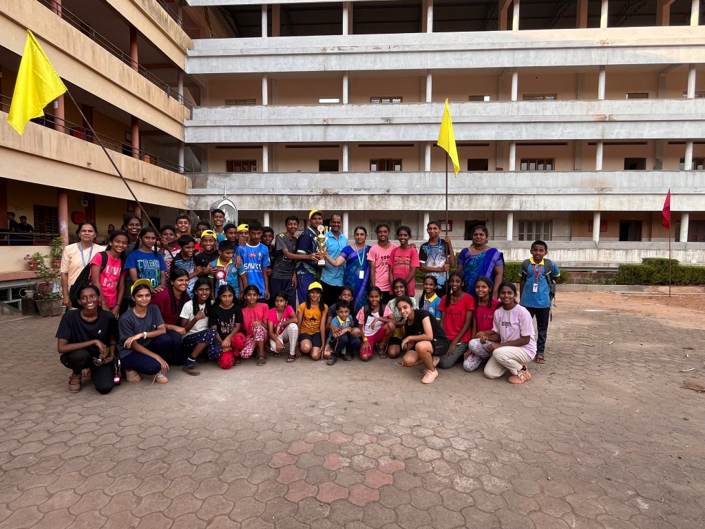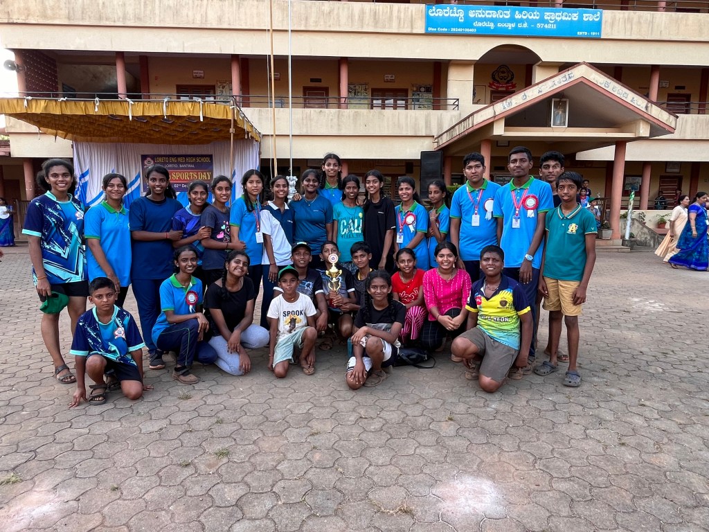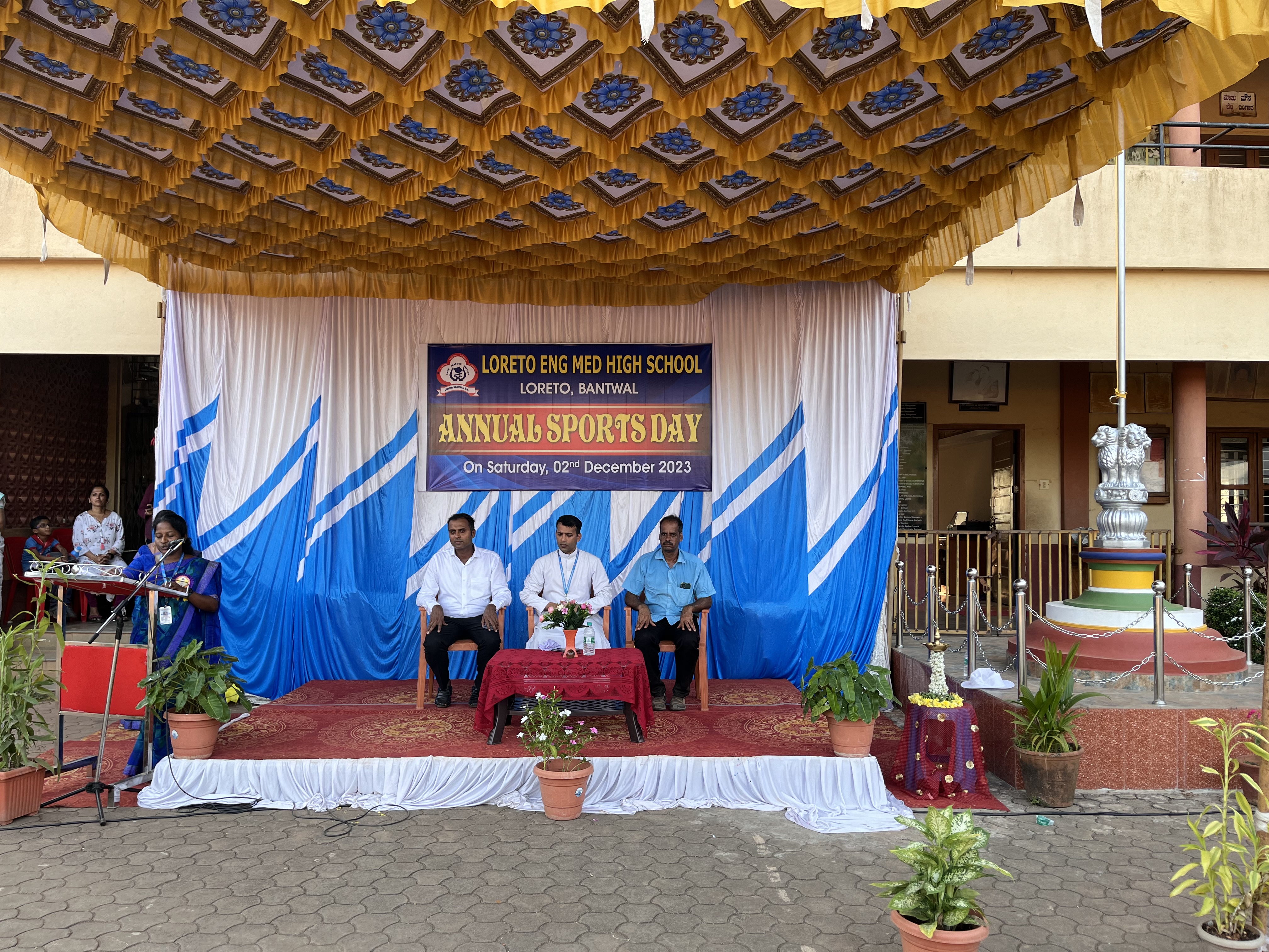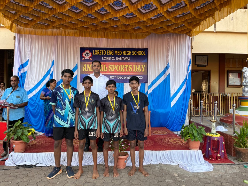 The day continued with the students taking part enthusiastically in various field and track events and the winners were recognized with the medals and certificates. The whole announcement anchoring is done by Mrs. Violet Rodrigues. As a solemn and symbolic gesture, the school flag, which had been hoisted in the morning was lowered by the dignitaries and then handed it over to PET Mr. Padmanabha Mayya. The highlight of the event was the prize distribution ceremony where students were recognized for their talents and achievements. As PET Mr. Padmanabha Mayya called out the names, the winners of relay teams, individual championships were awarded by the P.T.A. Vice President Mr. Sachin Noronha. Our School Principal Rev. Fr. Jason Vijay Monis awarded Overall Championships. Yellow group bagged the Overall Championship while green group were satisfied for the runner-up position. Our School Principal Rev. Fr. Jason Vijay Monis distributed Mementos to the P.T.A. members for their handwork and expressed words of gratitude to the gathering and those who helped today’s program to become memorable. Annual Sports Meet closing ceremony was anchored by Mrs. Pramila Monteiro. The ceremony concluded with by singing of the National Anthem.