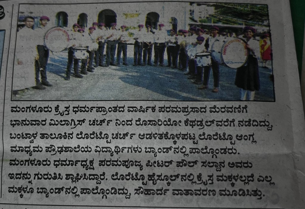 Loretto Eductional Institution School Band took participation for the first time at Diocesan Eucharistic Procession held on 7th January on the Feast of Epiphany of the Lord Jesus Christ held at Milagres to Rosario Cathedral.