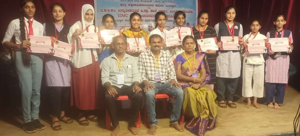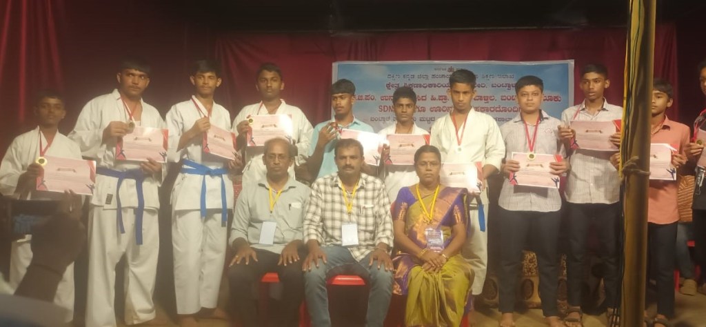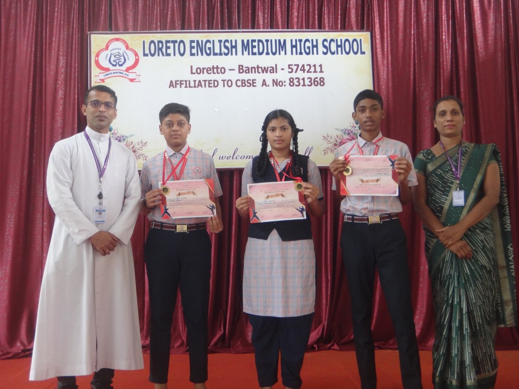 Dakshina Kannada Zilla Panchayat Higher Primary School Balthila, Bantwal organized “ Taluk level Karate Championship” for the students of Primary and Highschool on 8 August 2024. Our school students participated with a great zeal. The Principal Rev.Fr Jason Vijay Monis motivated the students to participate in the competition. The students of our school secured 3 prizes. Ms Asiya Sahana of Grade X secured 1st place in the category of 68+ kg. Mast. Pawan Kumar of grade X secured 1st place in the category of 62+ kg and Chinmay of Grade 10th secured 1st place in the category of -54 kg. The students are honoured with the medals and certificates. Our school Principal and Correspondent Rev. Fr. Francis Crasta appreciated and congratulated the students and the Mentor Mr. Jerald Fernandes for their efforts.
