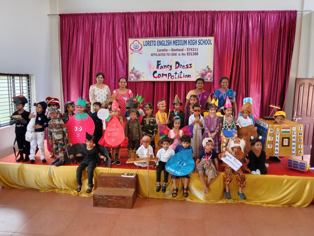On 21st August 2024 Loreto English Medium High School organized a “Fancy Dress” Competition for L.K.G and U.K.G Students.The event was a delightful Showcase of creativity. The event began with prayer song ,song with the teachers. Mrs Jesintha Moras given a warm welcome to the gathering.The event was graced by esteemed judges Mrs Preethi Frank and Mrs Joyce Rodrigues.