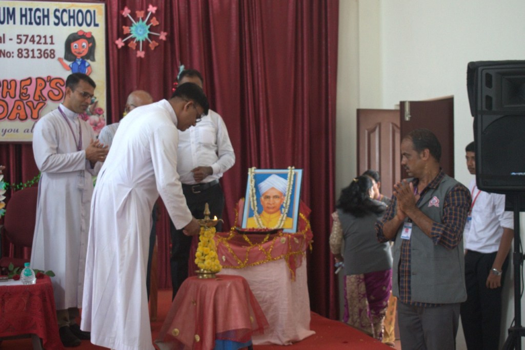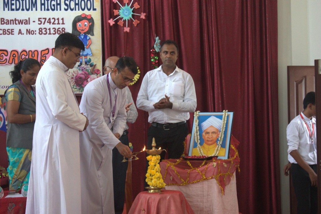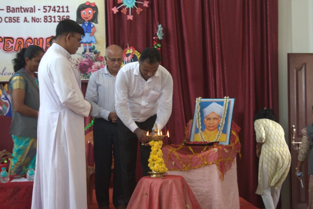 The School Correspondent Rev. Fr. Francis Crasta on behalf of School Management distributed mementos and shared motivating message with the gathering. Addressing the students emphasized that teachers often demand valuable qualities like discipline and hard work for the betterment. And he also said, “Students should respect to their teachers”. He also reminded the teachers that the teaching profession is not about pleasing one but it’s challenging one to shaping the future of the students. A PowerPoint Presentation was displayed by the students as a part of the program. The students showcased their talent through various cultural activities for the dedication of their beloved teachers. The vote of thanks was delivered by Galvin Saldhana from Grade X. The celebration was concluded with National Anthem.
