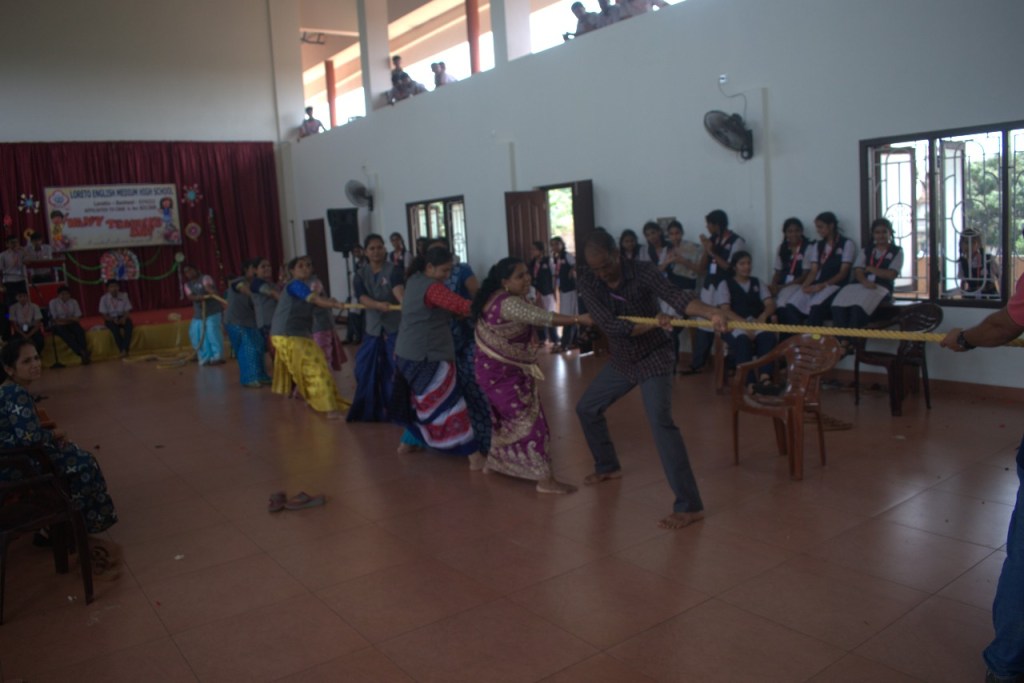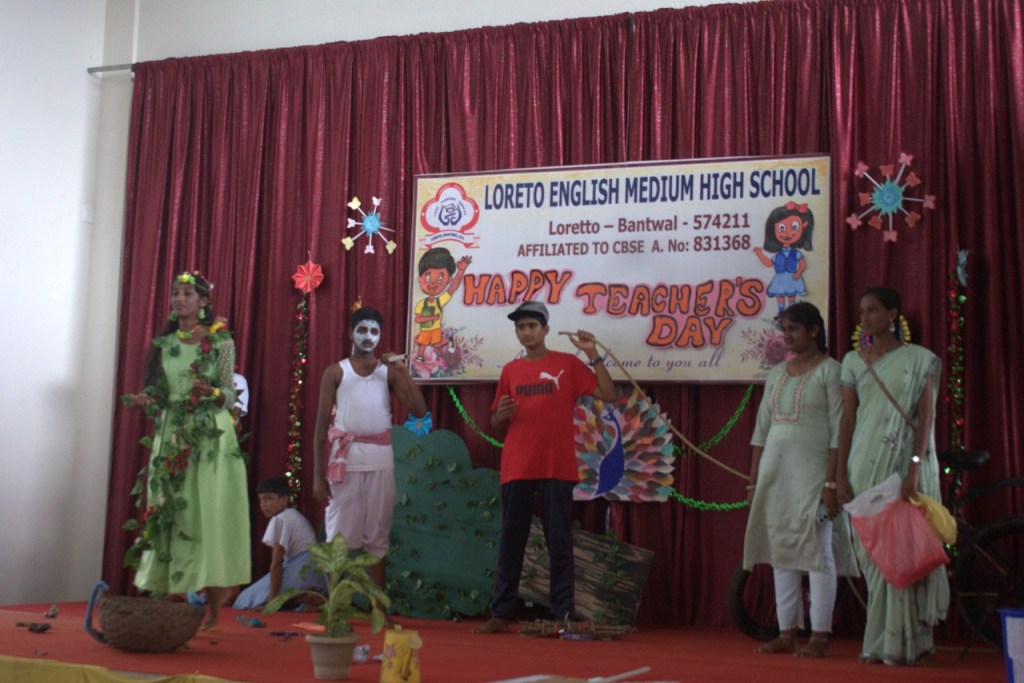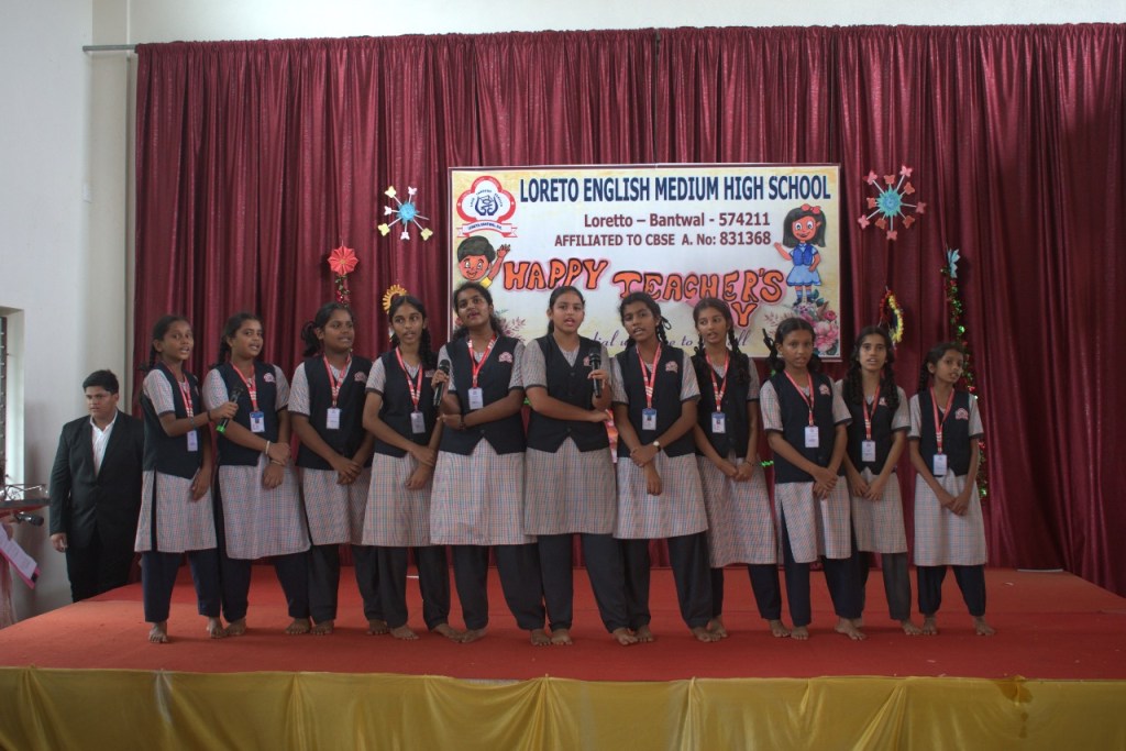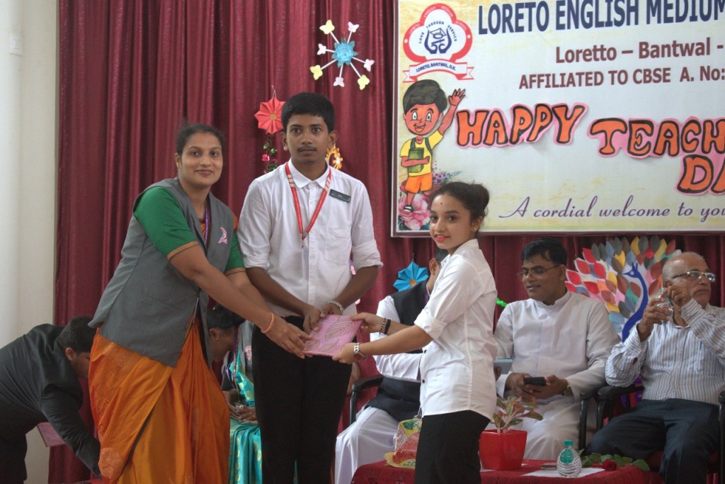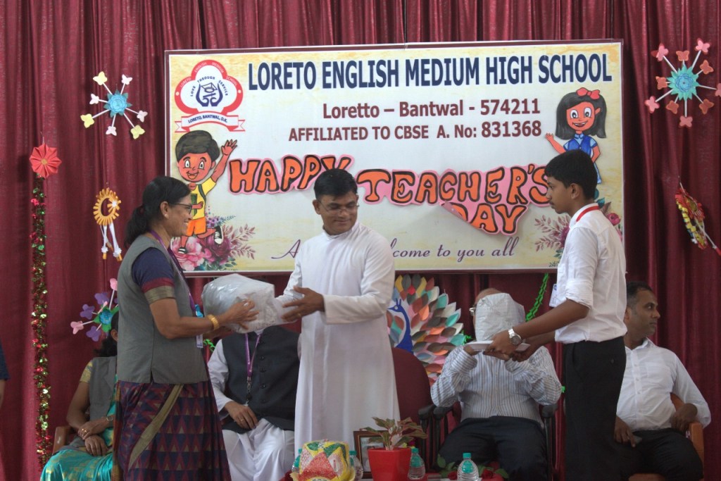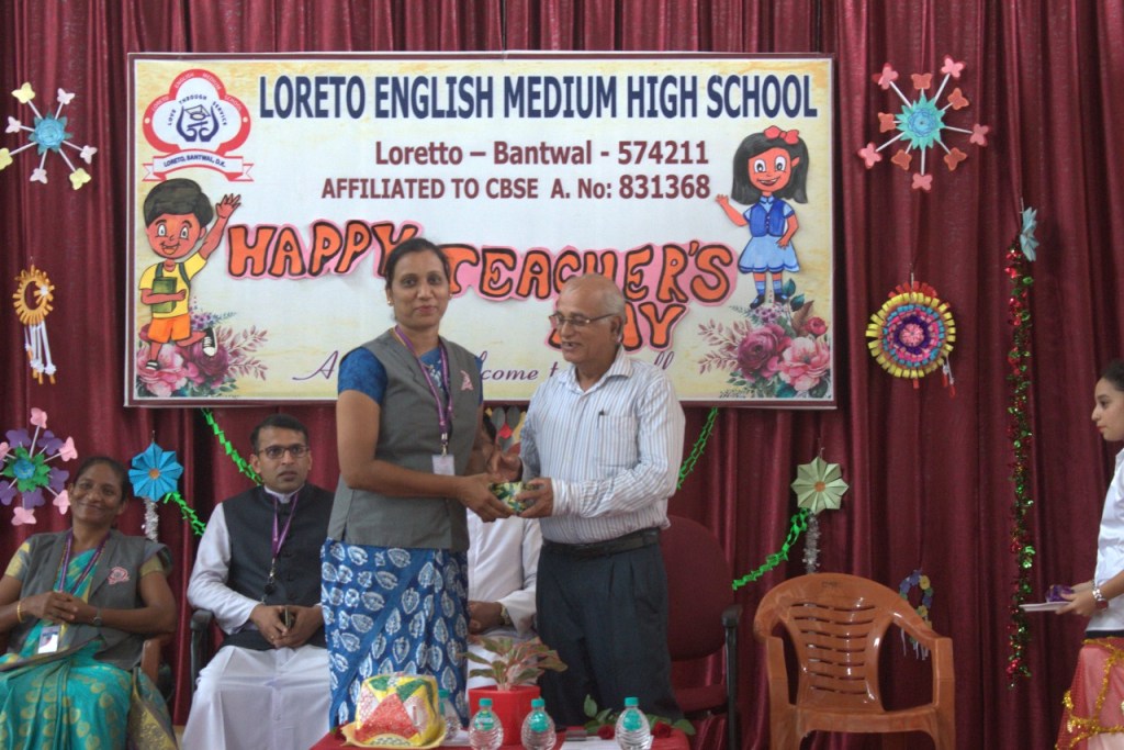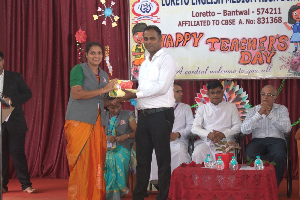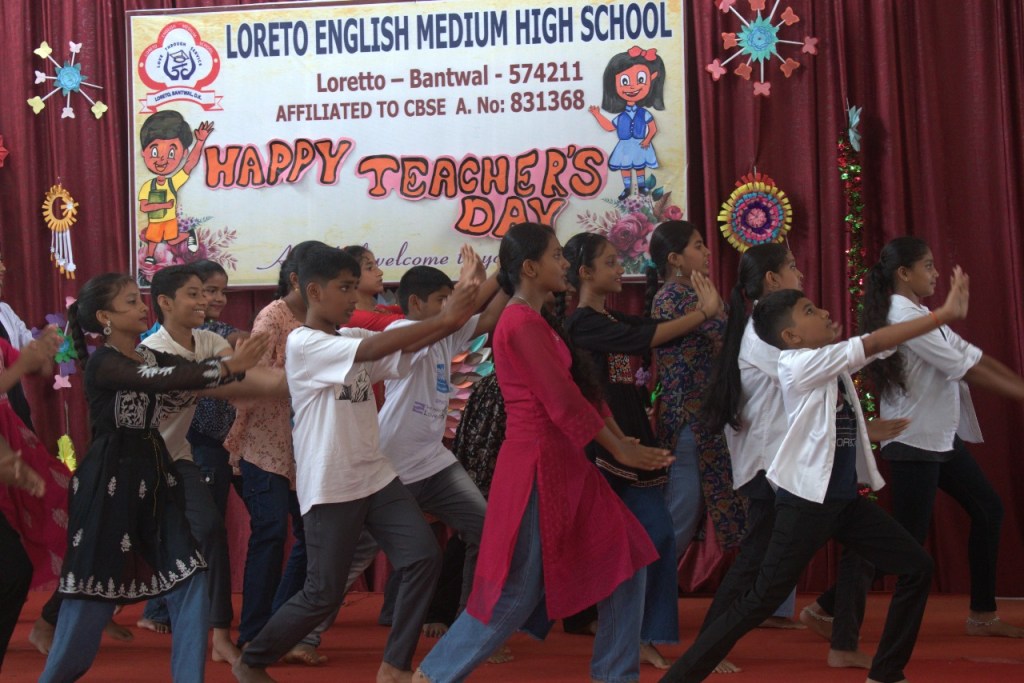 Loretto: On September 5th, 2024. English Medium High School celebrated “Teachers Day” with great enthusiasm and joy, honoring the dedication and hard work of our teachers. The celebration were organised by the PTA members and the students making it memorable day for everyone. A series of games were organised by the PTA members and the students which included fun and engaging activities for the Teachers. The celebration began with a warm welcome by the students, followed by a prayer dance. The School Correspondent Rev. Fr. Francis Crasta, The School Principal Rev. Fr. Jason Vijay Monis, The School Vice Principal Mrs. Anitha Shalini Pais, Parish Council Vice President Mr. Cyprian DSouza, PTA Vice President Mr. Sachin Noronha were present on the Dias. Ms. Jane Tauro from Grade X welcomed the gathering. The dignitaries lighted of the ceremonial lamp mark the beginning of the celebrations and symbolized the spreading of knowledge and wisdom. Ashel DSouza from Grade IX highlighted the importance of the day. On behalf of the students the Head Girl Sanvi Acharya and Head Boy Joshil Prinston Pinto distributed the mementos for teachers. Mr Sachin Noronha vice president of PTA delivered wonderful message to the teachers and congratulated for choosing this profession and wished for the future. The School Principal Rev. Fr. Jason Vijay Monis expressed heartfelt gratitude to the correspondent , School Management and PTA members for their support during the celebration. In his address he reminded the students that, “The future is not always smooth like butter or cake but rather like a rose on a plant, beautiful yet requiring a effort to overcome challenges. Students of standard 10th Prineeth Pinto and Ianna Pinto compered the progamme.