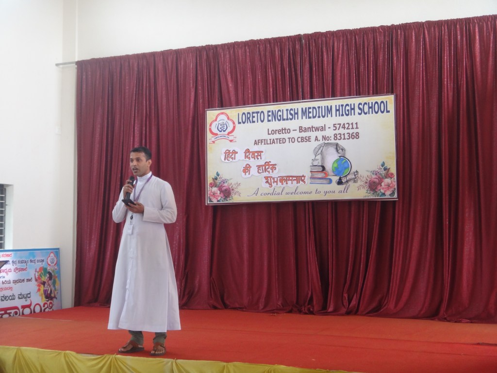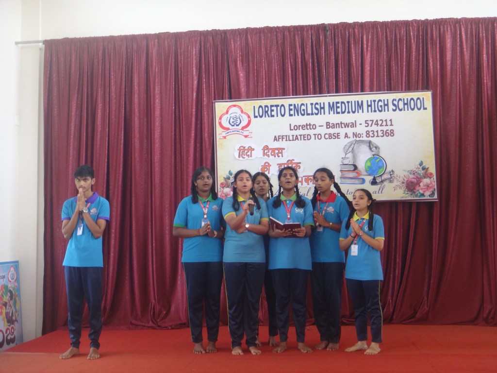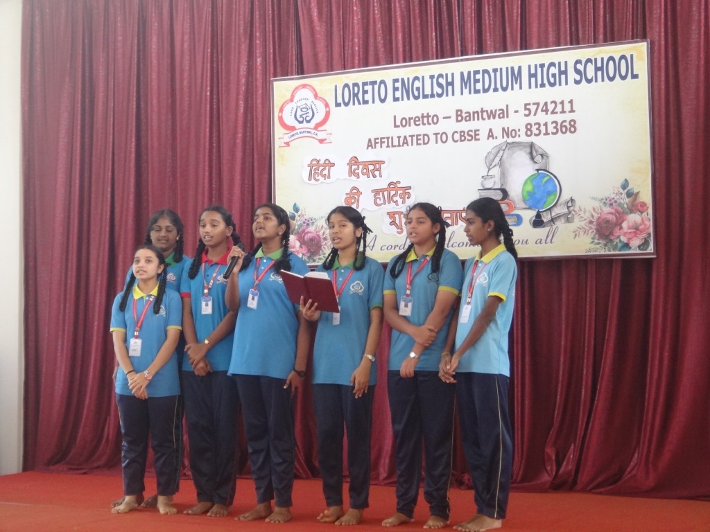 On September 14th,2024, Loreto English Medium High School celebrated “Hindi Diwas” with great enthusiasm and respect for the national language. The event commenced with the special assembly. Aditya Gupta of grade V delivered an inspiring speech. The students of Grade X set the tone of the event with melodious in the song. The Hindi club students performed skit. The girls from grade VI and VII presented a colourful and energetic dance performance. Our School Principal Rev. Fr. Jason Vijay Monis delivered an inspiring message emphasized the importance of Hindi Diwas is celebrating India’s rich linguistic heritage, promoting pride in the Hindi language, fostering national unity and preserving are cultural identity. He instructed the students to learn more language for the betterment of the future and appriciated the students for their hardwork. The entire program was expertly anchored and delivered vote of thanks by Dale Alba Lobo from grade VII.