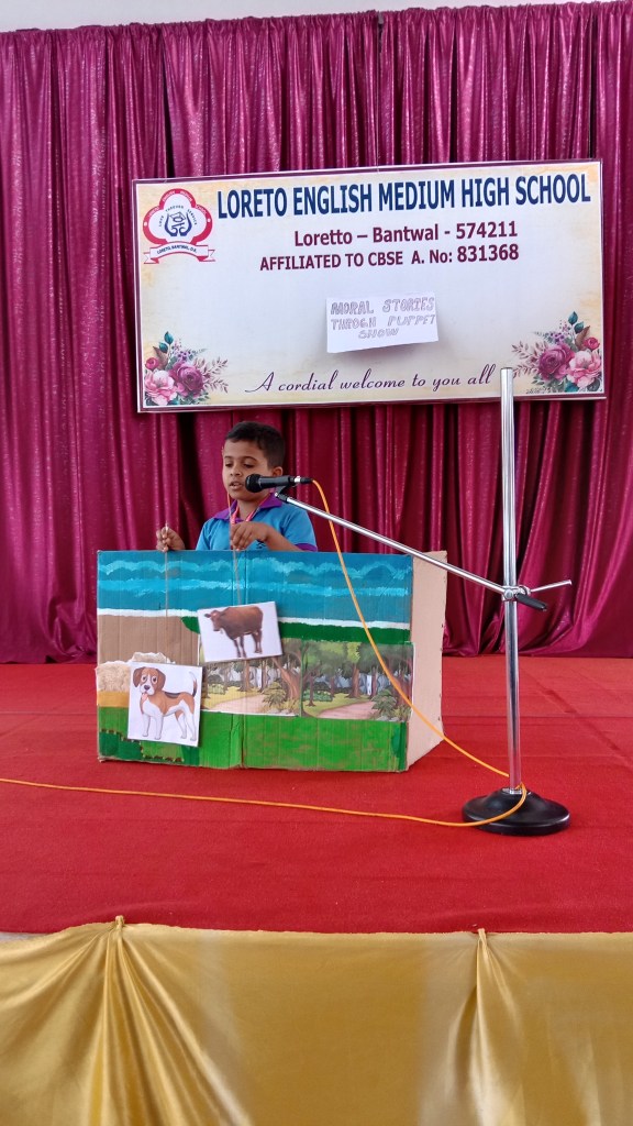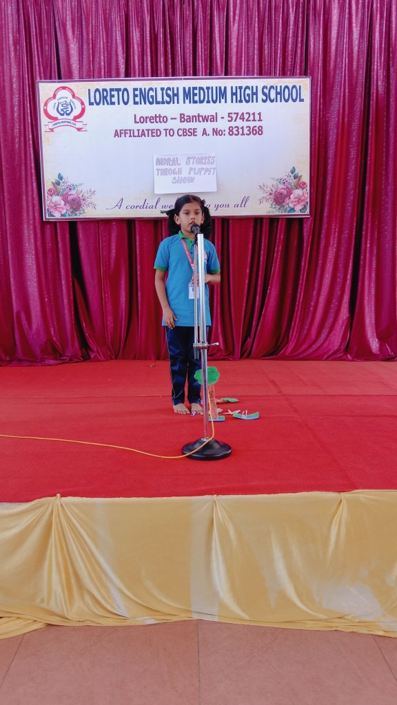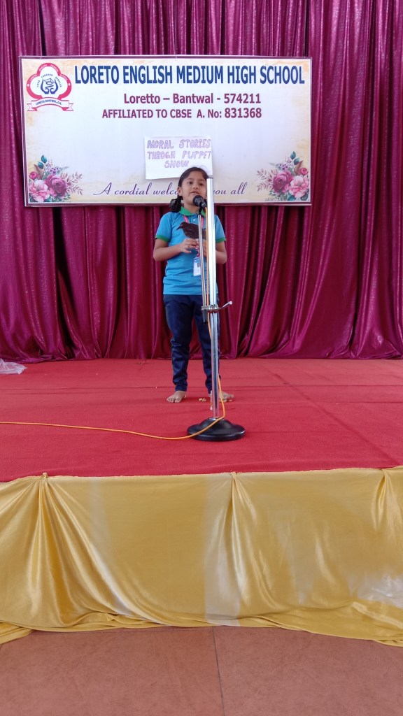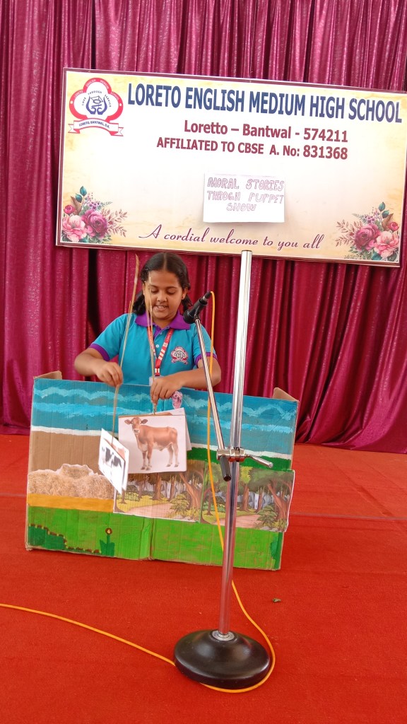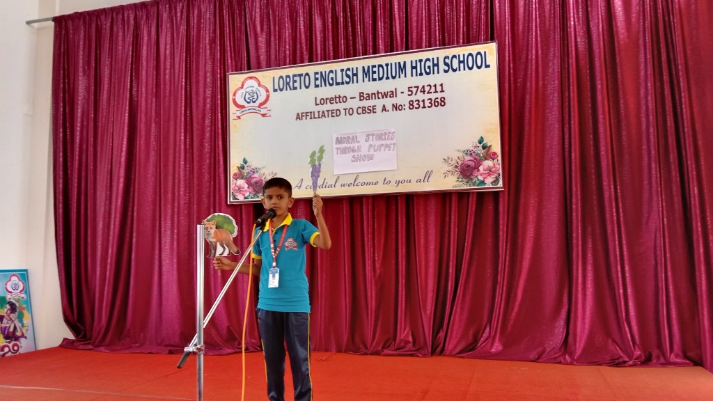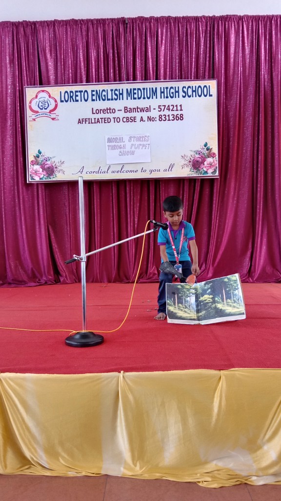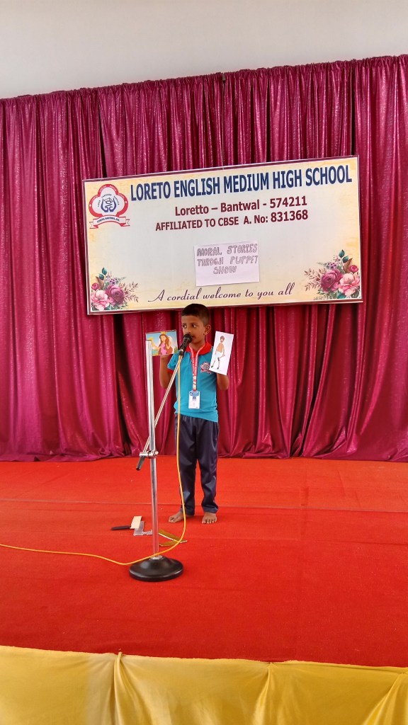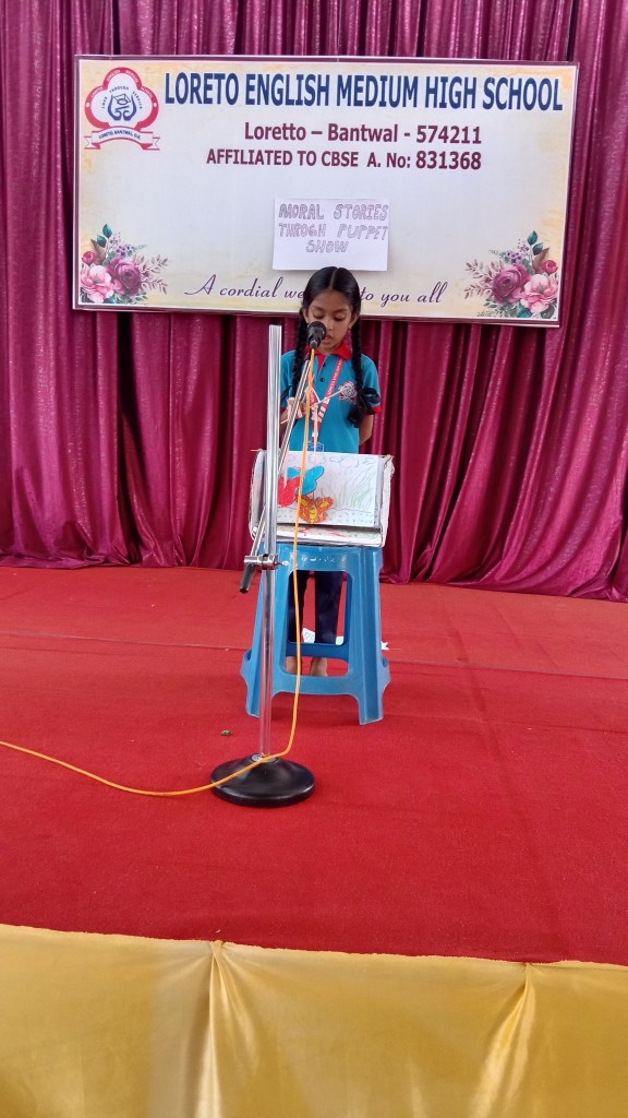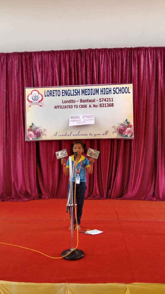 On 18 September 2024 students from Grades I to V of Loreto English Medium High school participated in a “Moral Stories through Puppet Show Competition”. Our School Principal Rev. Fr. Jason Vijay Monis supported this initiative, encouraging students to take part in this competition for overall development. Students work in crafting beautiful puppet and their stories with enthusiasm. The competition helped to enhance their creativity, communication skills , confidence in public speaking and to understand the importance of moral values in everyday life. The competition was judged by Mrs Prameela Montheiro and Miss. Kavitha.