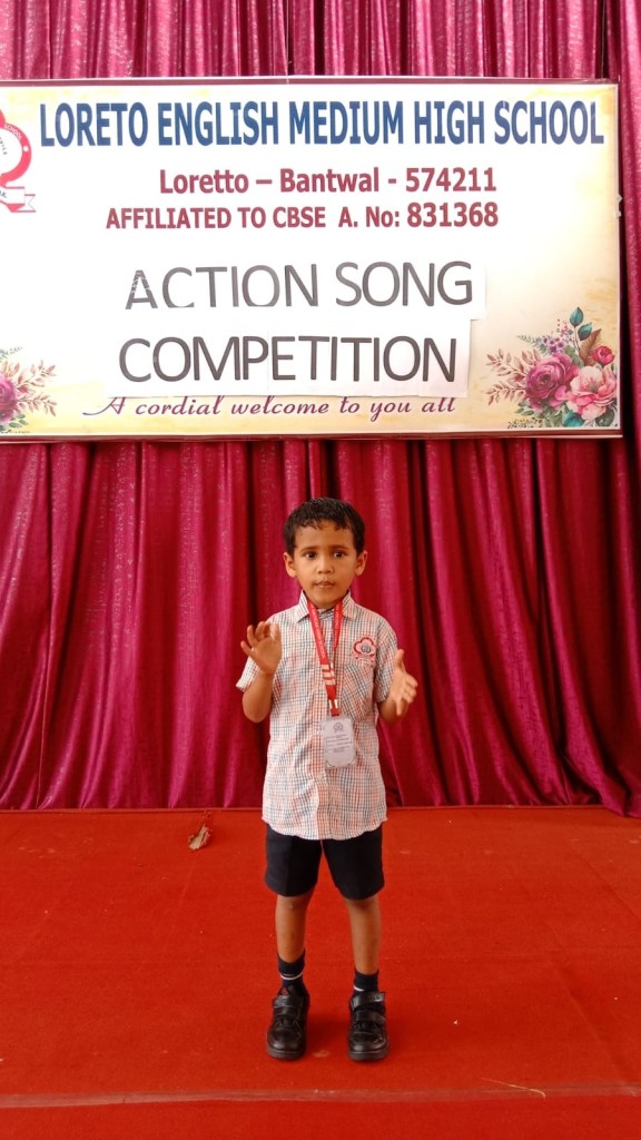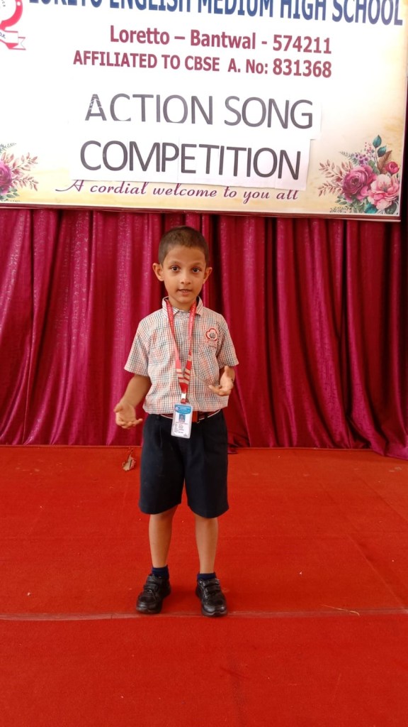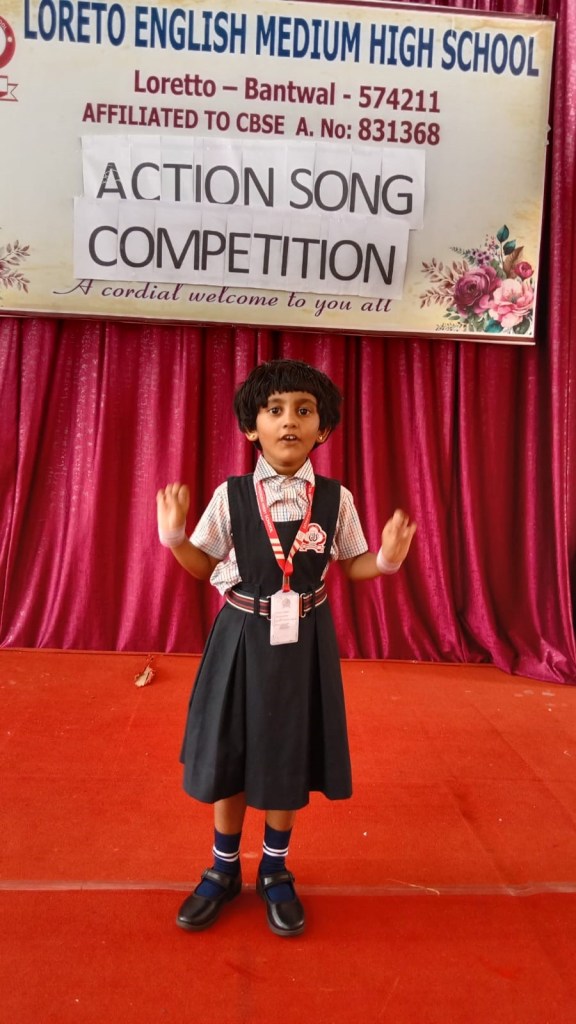 Loreto English Medium High School conducted an “Action Song Competition” on 28 October 2024. The event featured enthusiastic participation from the students of LKG and UKG. Our School Principal Rev.Fr. Jason Vijay Monis encouraged all the students to participate in the competition. The young participants sang and acted out with an actions. The competition proided a valuable opportunity for the children to build confidence. The competition judged by Mrs. Jyoti D’Souza and Mrs. Jacintha Moras.