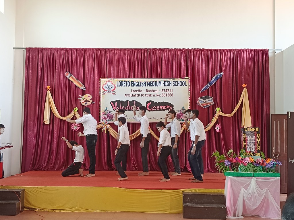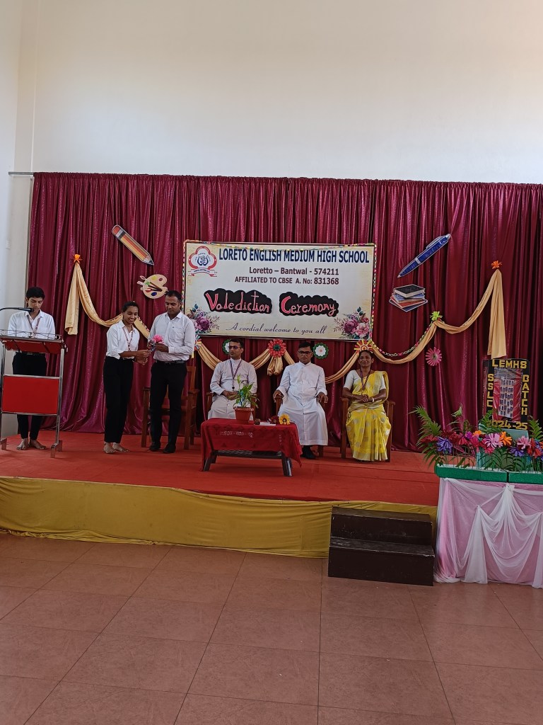 On 05/04/2025 , ” Valediction Ceremony” for the outgoing students of Grade X was held with great warmth and grandeur at Loreto English Medium High School in the school auditorium. The event was graced by the presence of the Correspondent Rev. Fr. Francis Crasta, Principal Rev. Fr. Jason Vijay Monis, Vice Principal Mrs. Anitha Shalini Pais, and P.T.A. Vice President Mr. Sachin Noronha.