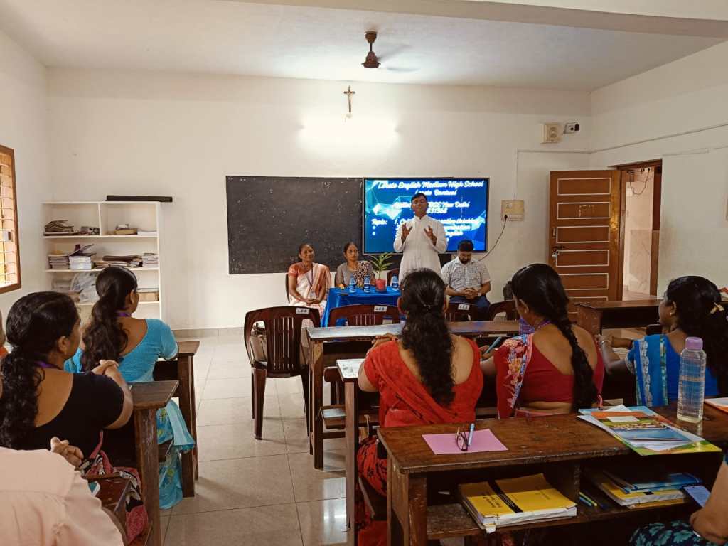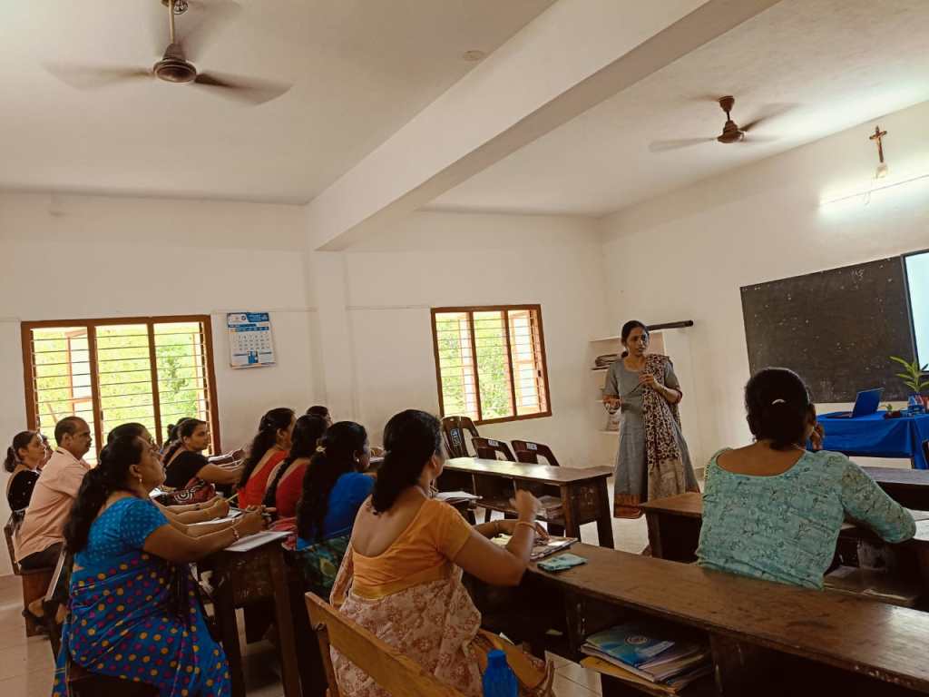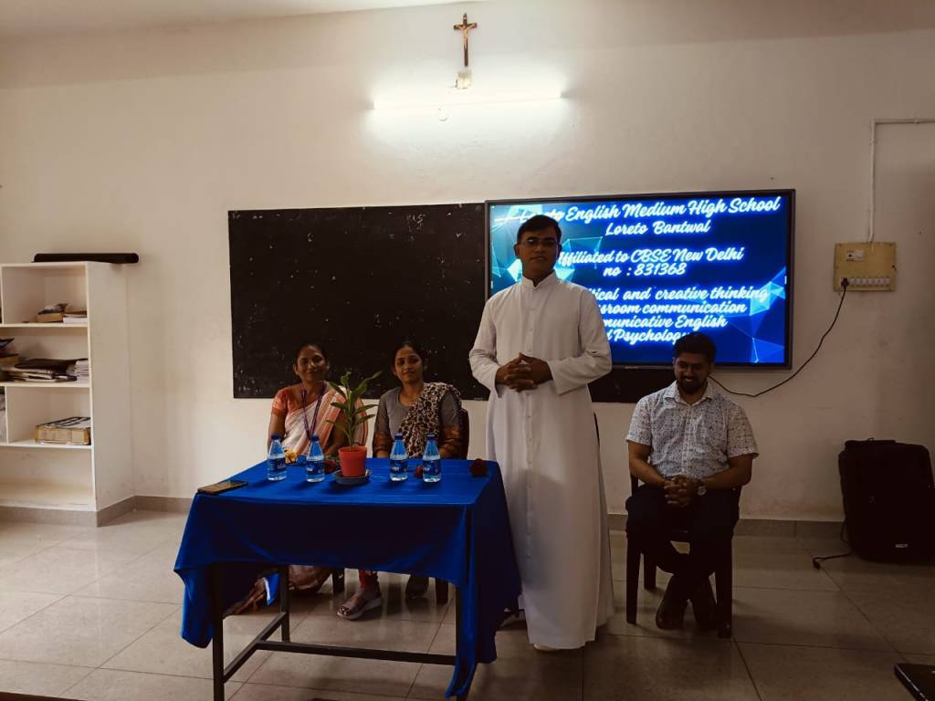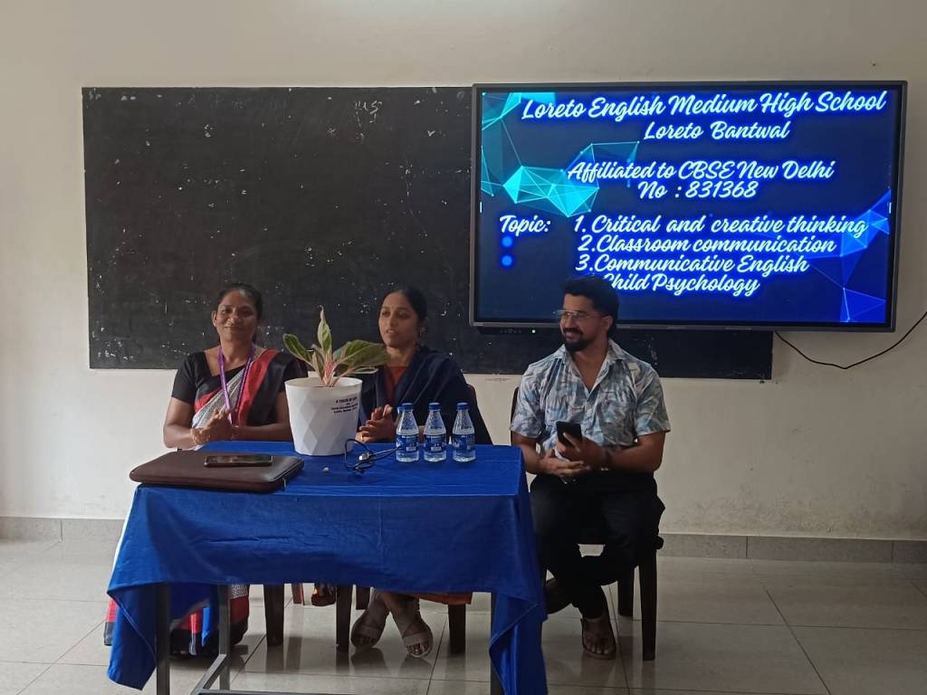 Loreto English Medium High School organized a two-days seminar for teachers on the 28th and 29th of May 2025, in collaboration with Rathnasagar Publishers. The seminar was designed to enhance teaching skills and introduce innovative methods in classroom management. The program commenced with a formal welcome address by Mrs. Vinitha Priya Dsouza, who greeted the esteemed guests and participants. The dais was honored by the presence of Correspondent Rev. Fr. Francis Crasta, Mr. Vasanth Poojary (Publisher), and Mrs. Vedula Suseela the Resource Person for the seminar. Our School Correspondent Rev. Fr. Francis Crasta. Our Correspondent, Rev. Fr. Francis Crasta, stated that education is not static. He emphasized that life skills help individuals adapt to changing circumstances and reflect modern thinking. He also mentioned the importance of being prepared to lead in the 21st century and wished all the participants success in their teaching journey. Our School Principal Rev. Fr. Jason Vijay Monis encouraged and supported to participate in this session. Mrs. Vedula Suseela conducted the sessions with clarity and enthusiasm, sharing valuable insights and practical strategies that teachers can apply in their daily classroom activities. Her sessions encouraged active participation and thoughtful discussion among the attendees.The seminar proved to be highly enriching and was well-received by all the teachers. It provided an excellent platform for professional development and collaborative learning. Mrs. Anitha Pais Vice Principal of our school offered sapling as a token of gratitude to Resource person Mrs. Vedula Suseela. Mrs. Voilet Rodrigues anchored the programme. Reena Crasta extended heartfelt thanks to the success of the session.