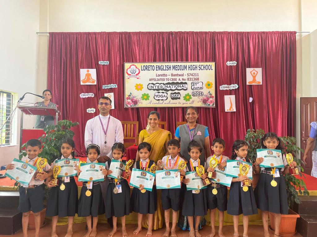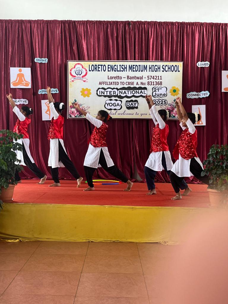 Loreto English Medium High School CBSE celebrated International Yoga Day with great zeal and positivity in the school auditorium, embracing this year’s global theme “Yoga for One Earth, One Health”. The event highlighted the significance of yoga in maintaining harmony between mind, body, and soul.