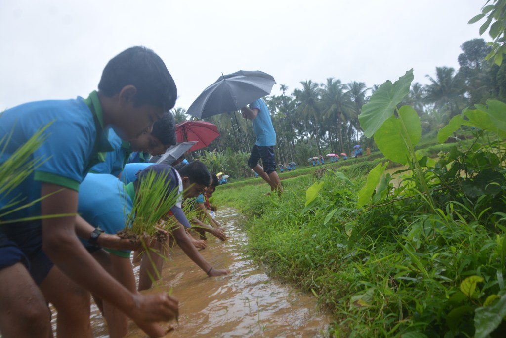The students were accompanied by the school Principal, Fr. Jason Vijay Monis, and teachers Mrs. Anitha Pais and Mrs. Mareena. The purpose of the visit was to help students understand how paddy is cultivated, as many in today’s generation have little exposure to traditional farming practices.