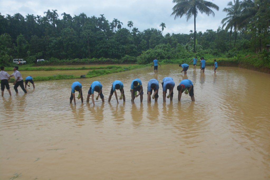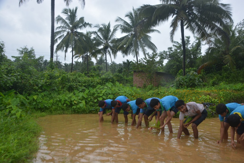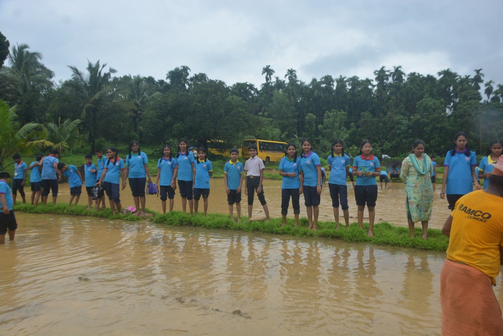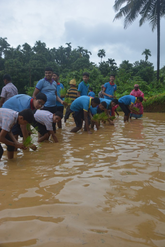 Students of Loretto English Medium High School, CBSE, had an enriching experience visiting a paddy field as part of an educational field trip. The visit took place at the fields owned by Mr. Jerald Pinto and Mrs. Sunitha.