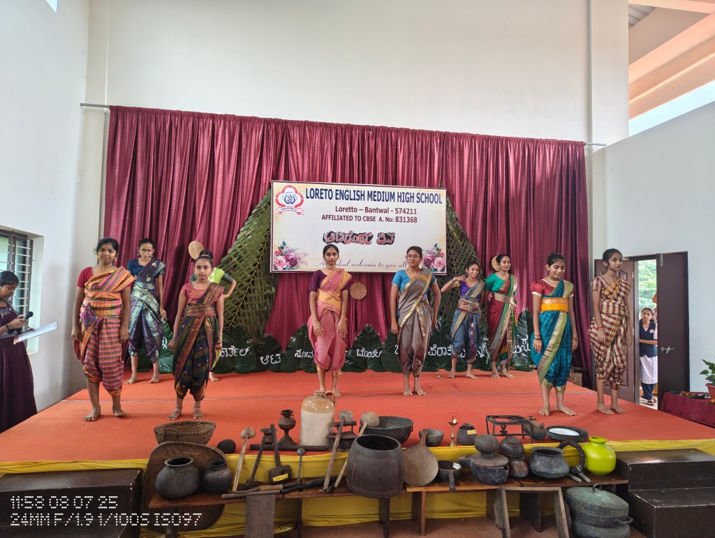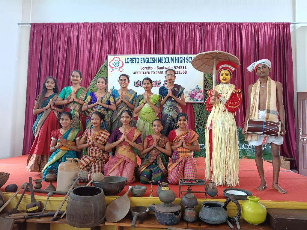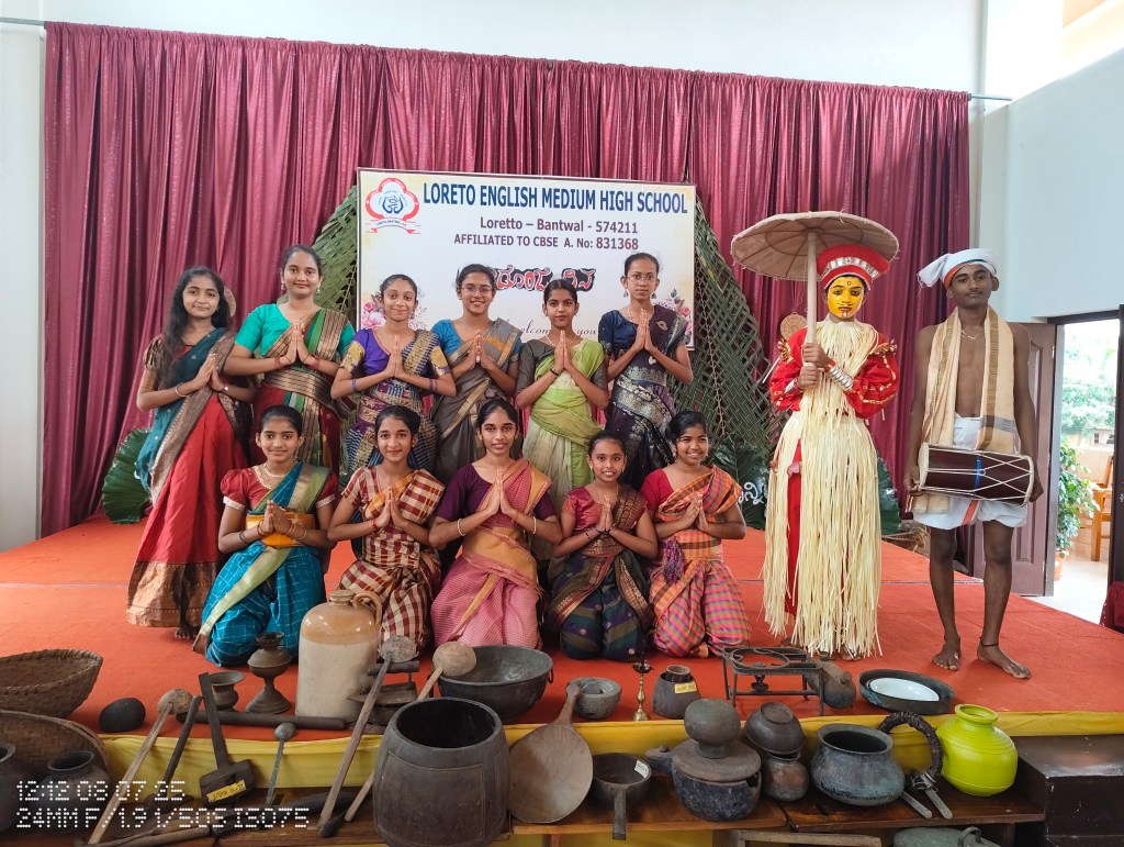 The event featured vibrant cultural performances by students, including traditional Tulu songs and folk dances. A highlight was the portrayal of Aati Kalenja by Harshith Grade VIII and Pavan, who dressed as the traditional spirit and the drummer, respectively. Their performance brought the tradition of Tulunadu to life.