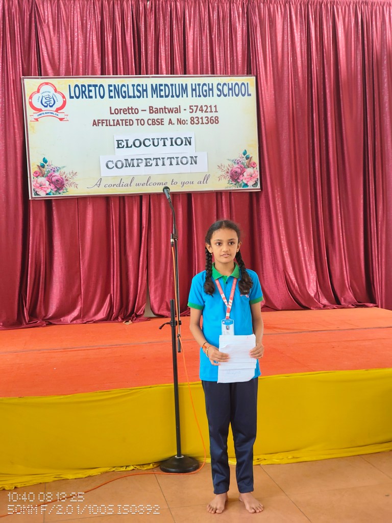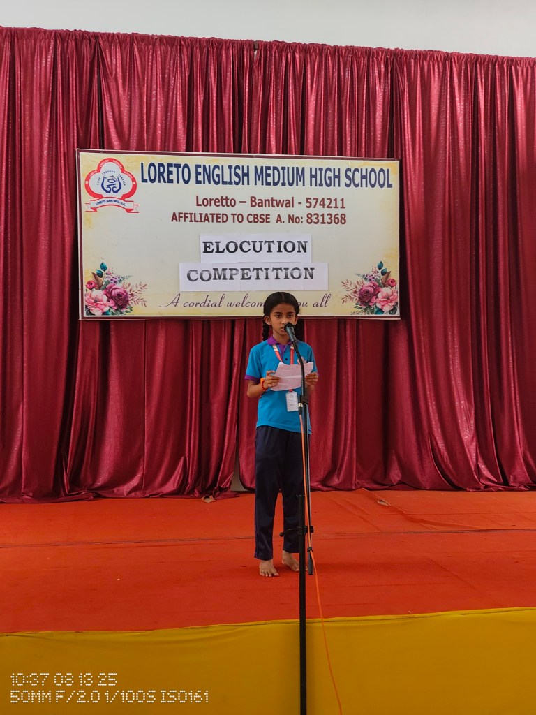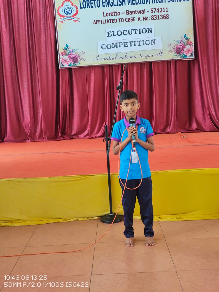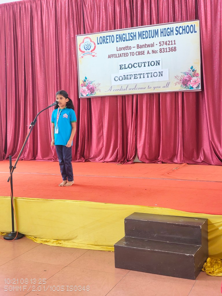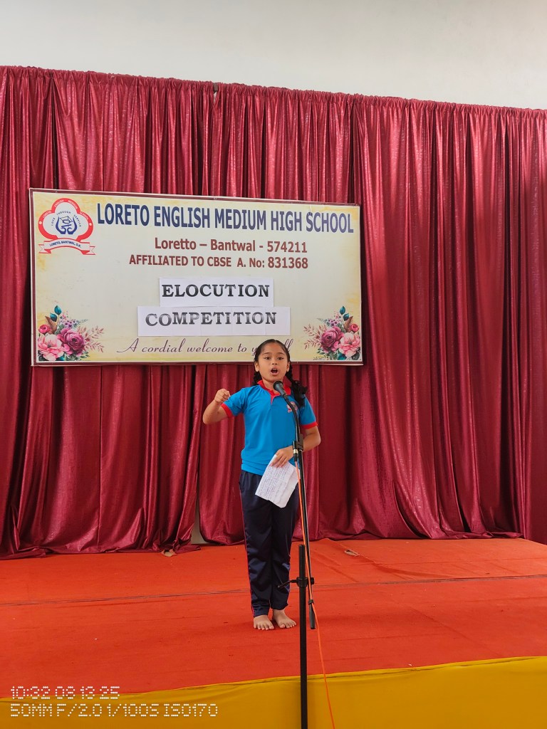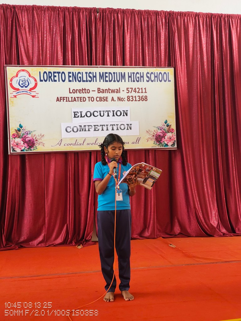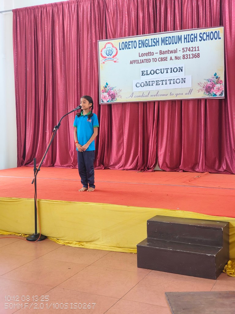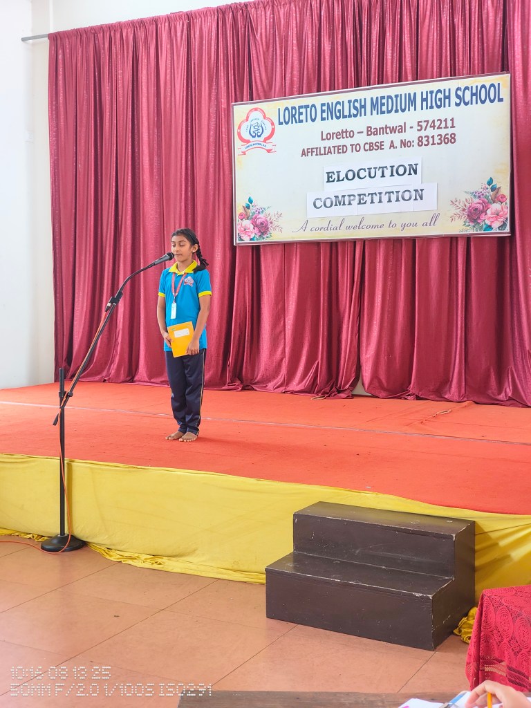 Loreto English Medium High School organised an Elocution Competition for students from Grades 1 to 10 in the school auditorium. The event aimed to develop students’ public speaking skills and encourage them to express their thoughts on themes related to patriotism and national pride. Different topics were assigned to different grades, ensuring that the speeches were age-appropriate and thought-provoking.