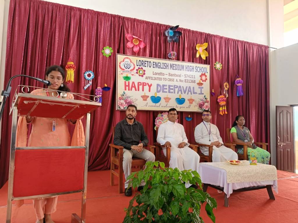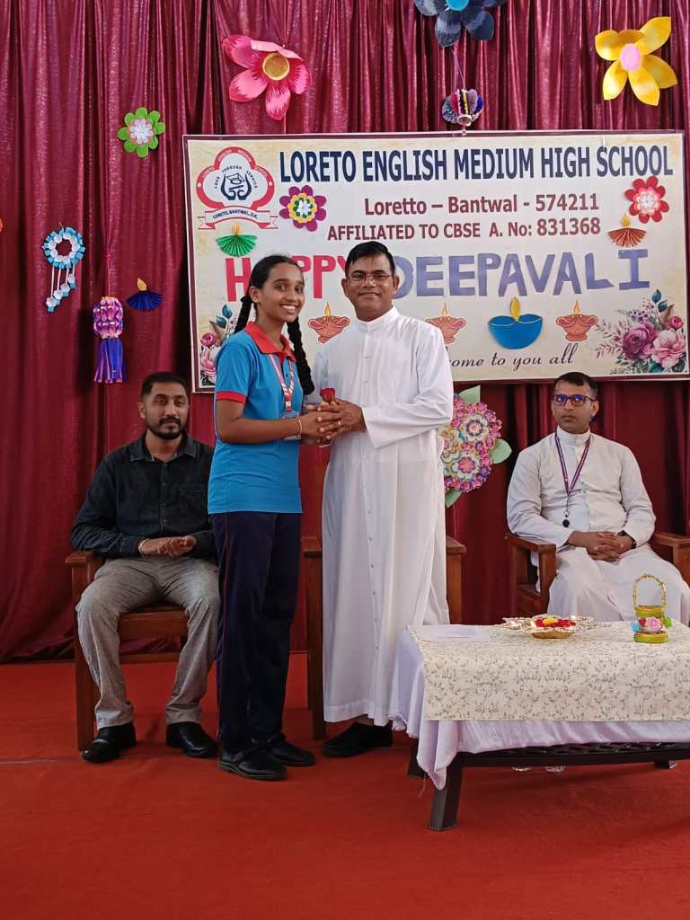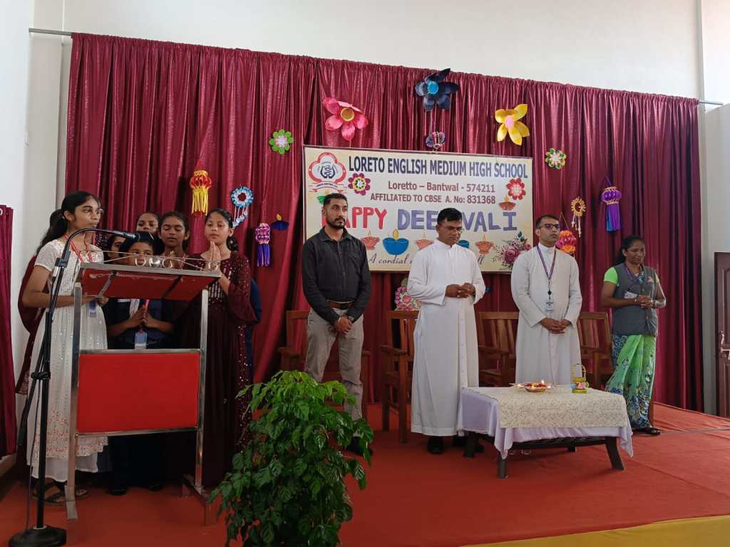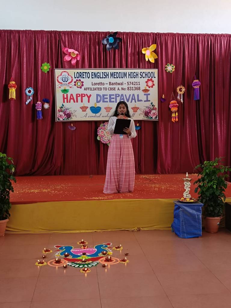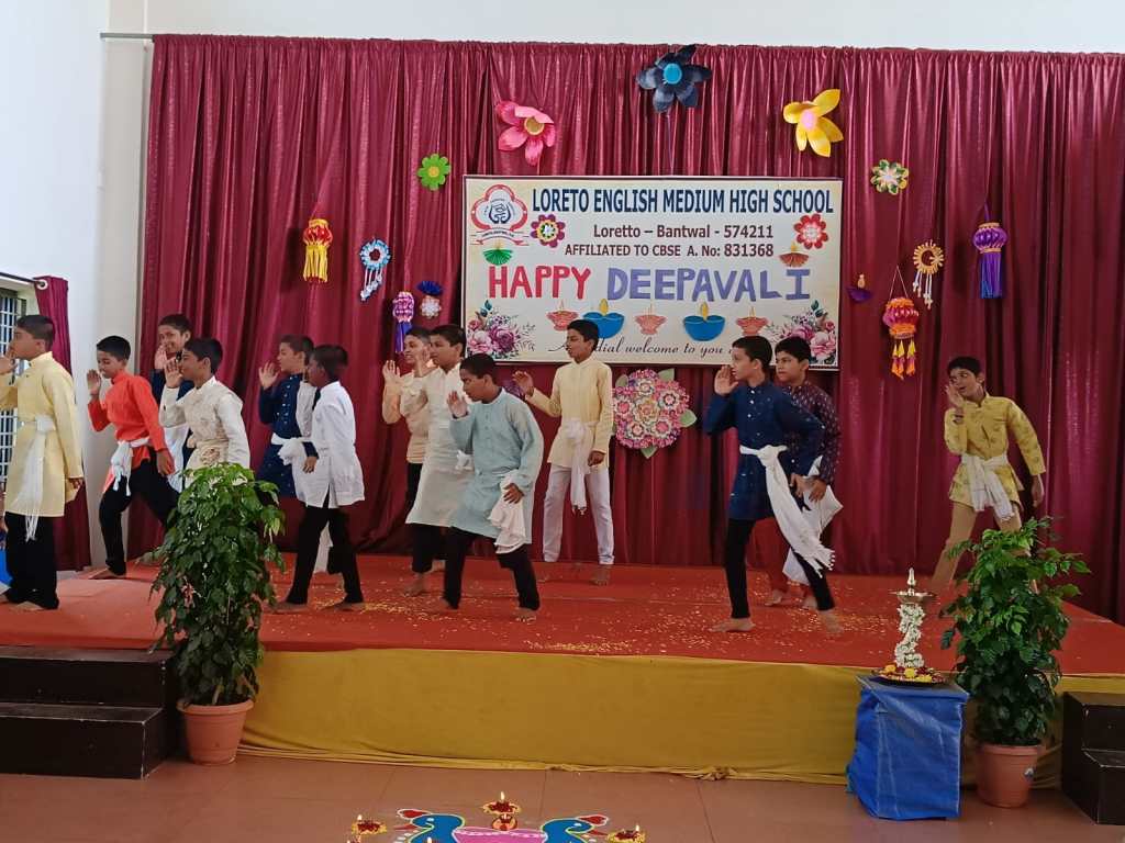 Loreto English Medium High School, CBSE, celebrated the festival of lights, Deepavali, with great joy and enthusiasm. The programme was graced by the School Manager, Fr. Francis Crasta, School Principal Fr. Jason Vijay Monis, PTA Vice-President Mr. Rodney Ivan D’Souza, and the Vice-Principal, Mrs Anitha Pais.