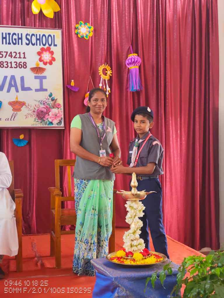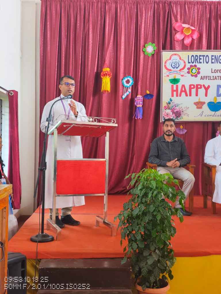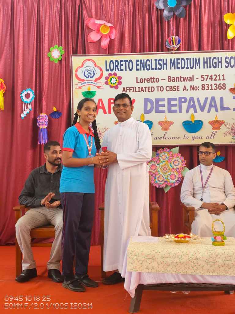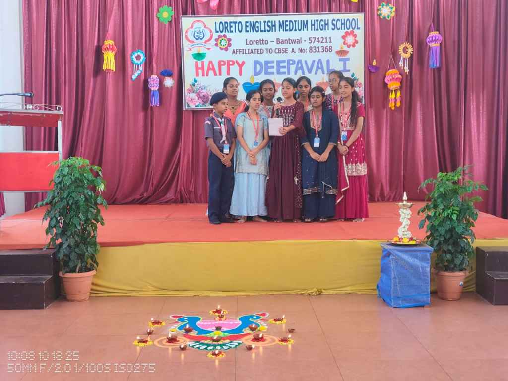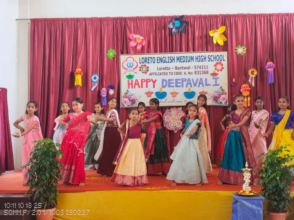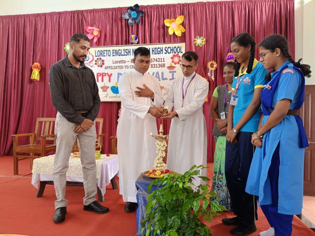 Loreto English Medium High School, CBSE, celebrated the festival of lights, Deepavali, with great joy and enthusiasm. The programme was graced by the School Manager, Fr. Francis Crasta, School Principal Fr. Jason Vijay Monis, PTA Vice-President Mr. Rodney Ivan D’Souza, and the Vice-Principal, Mrs Anitha Pais.