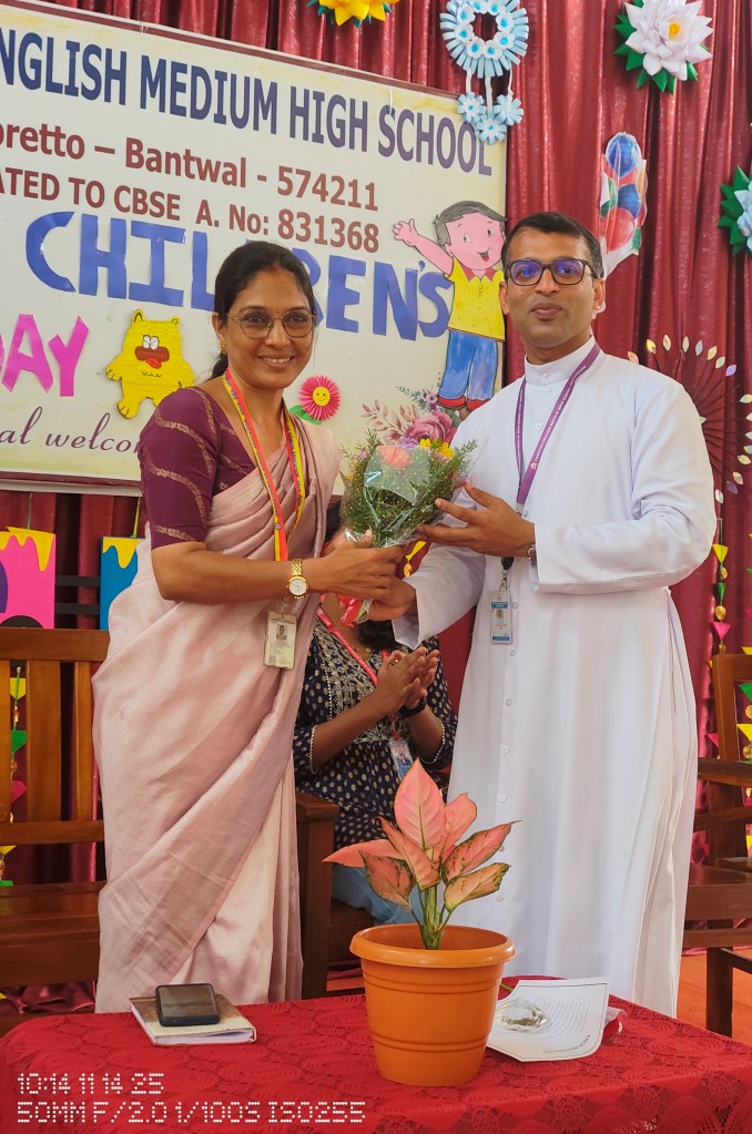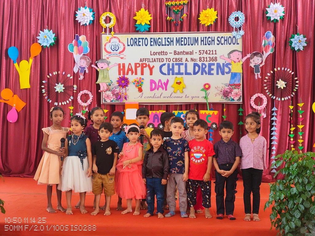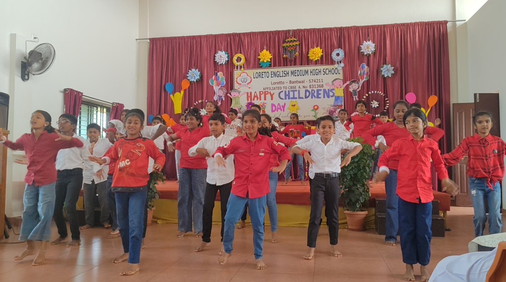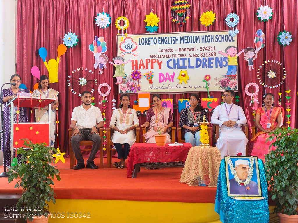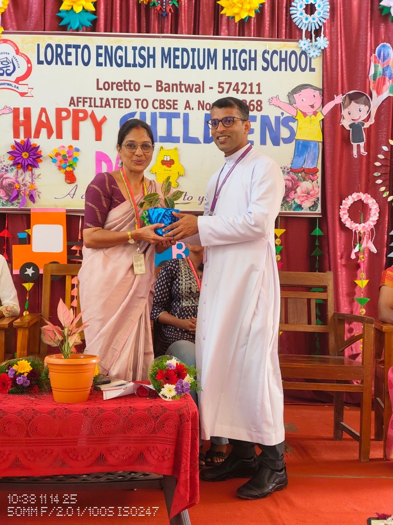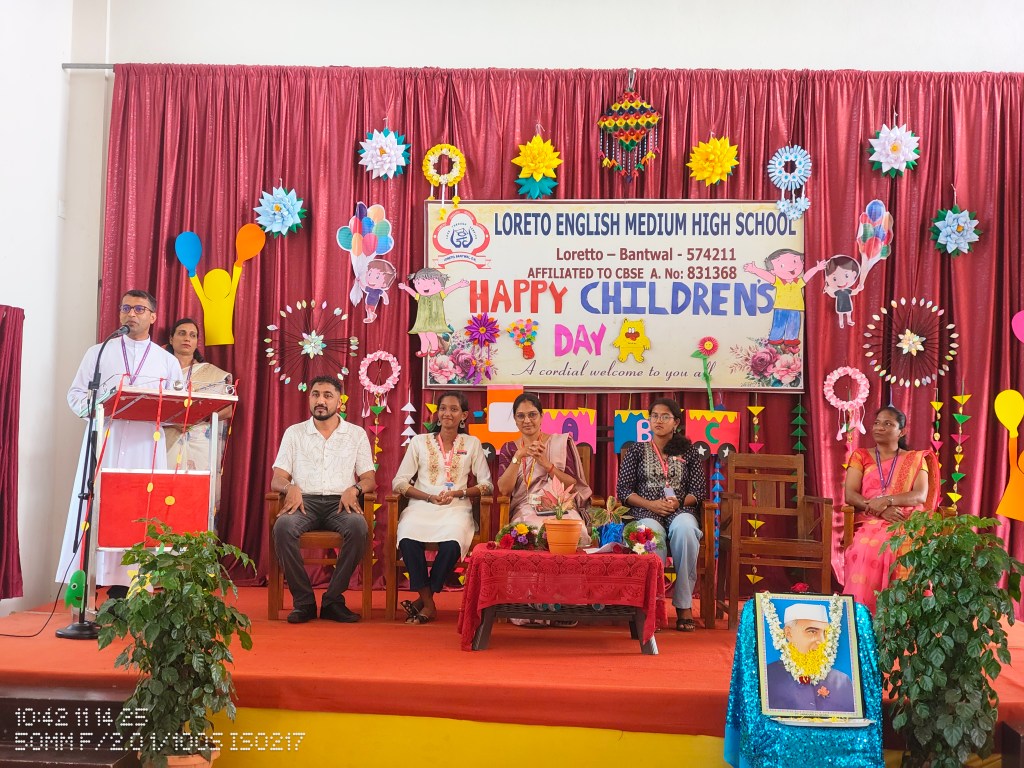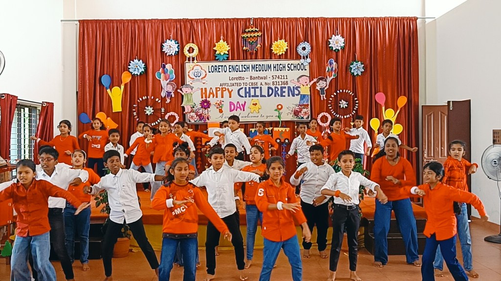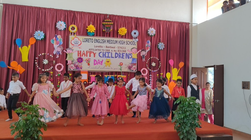 Loreto English Medium High School CBSE, Loreto, celebrated Children’s Day with great enthusiasm and joy. The programme was graced by the presence of Principal Fr. Jason Vijay Monis, Chief Guest Mrs. Prathima Y. V. (ECO, Bantwal), PTA Vice President Mr. Rodney D’Souza, and Vice Principal Mrs. Anitha Pais.