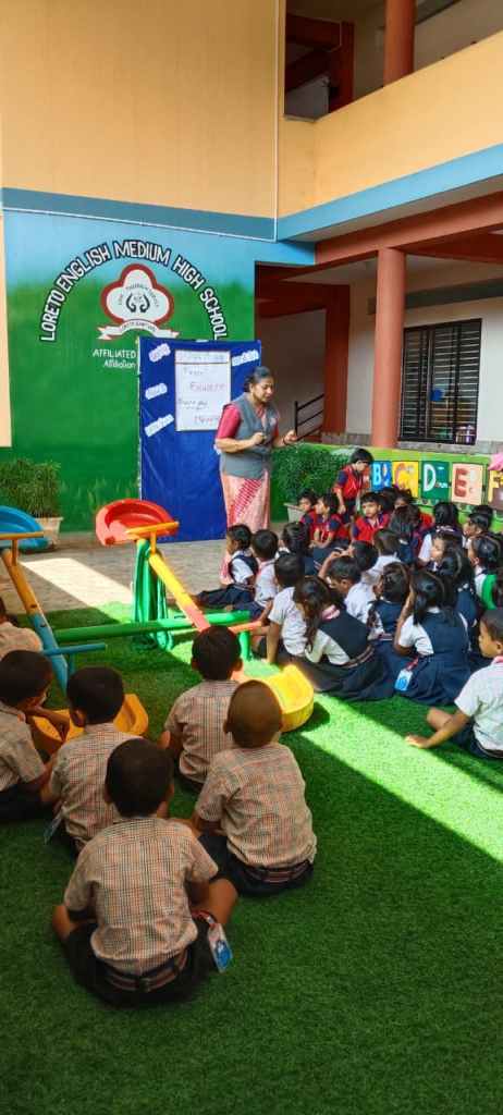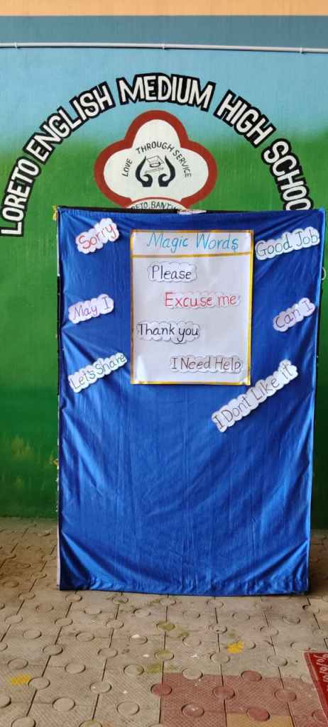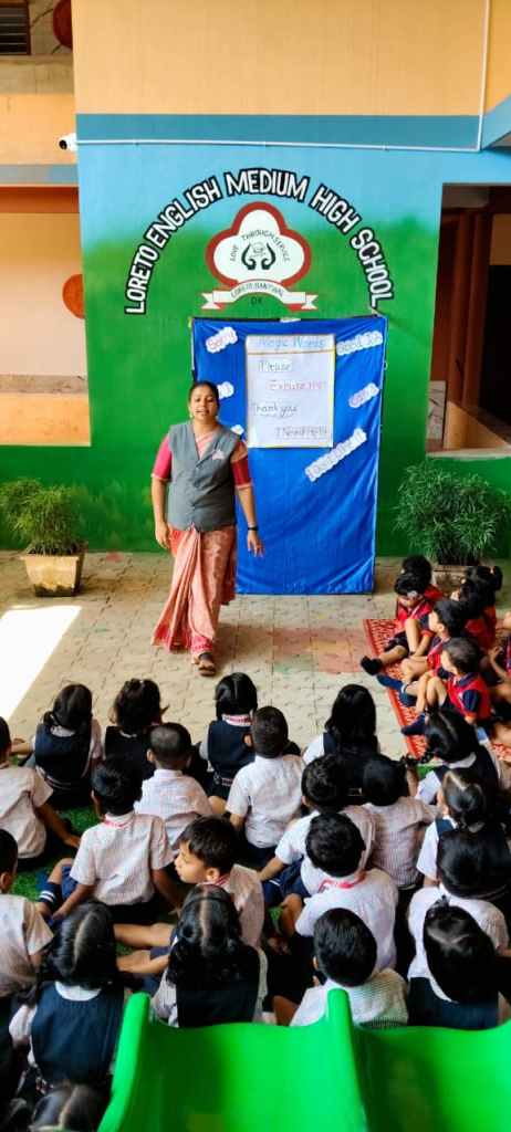 A special Magic Words activity was conducted for the Kindergarten children of Nursery, LKG, and UKG at Loreto English Medium School. Led by the school counsellor, the activity aimed to help young learners develop good manners and polite communication habits.