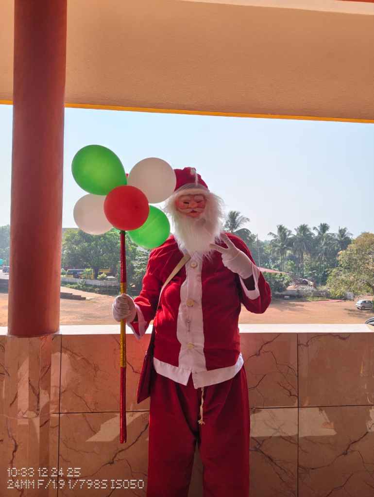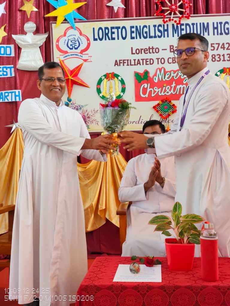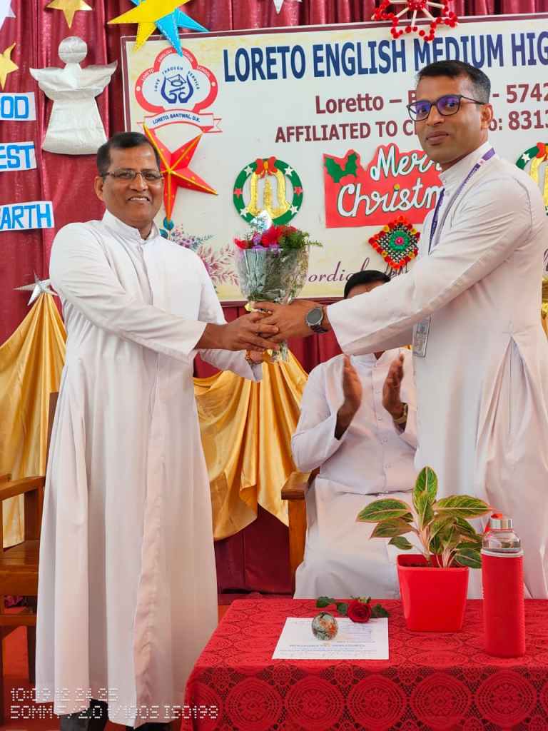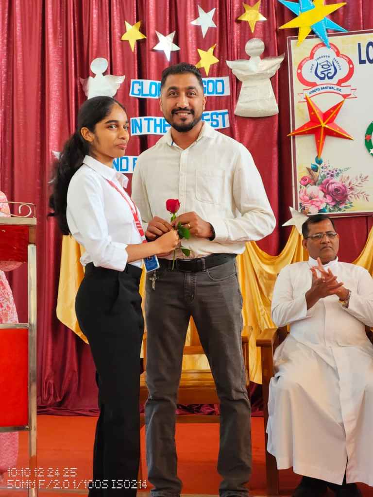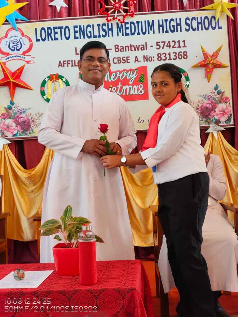 Rev. Fr. Melwin Lobo wished everyone a Merry Christmas and spoke about the birth of Jesus and the powerful message it gives to humanity love, hope, humility, and service to others. He encouraged students to follow these values in their daily lives.