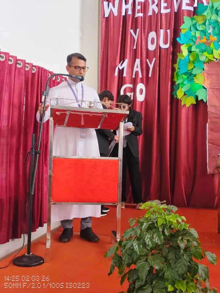 Principal Rev. Fr. Jason Vijay Monis in his address, highlighted that the students of Grade X were the first batch of the school to appear for the CBSE Class X Board Examination, marking an important milestone in the history of the institution. He encouraged them to aim for excellent results and give their best in the examinations. He further advised the students to choose the right path and make the right decisions in life, reminding them that the world ahead would be full of challenges and surprises. He urged them to be responsible, confident, and determined to achieve something meaningful in life and wished them a bright and successful future.