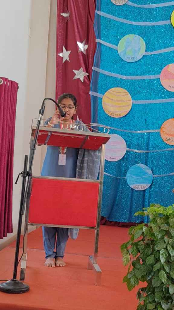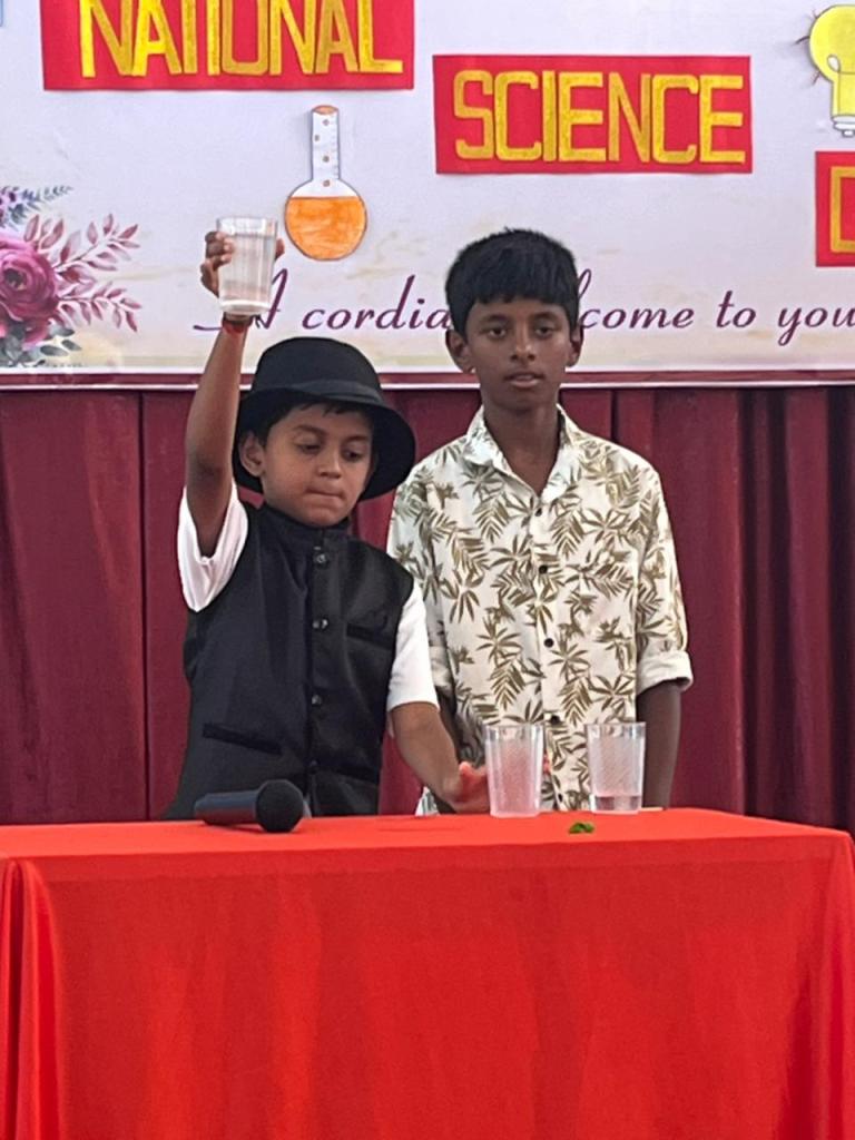Vaagmi of Grade 4 compered the programme. Shyna of Grade 7 delivered the welcome address, and Praina explained the importance of National Science Day and the significance of the Raman Effect. The programme concluded with the vote of thanks proposed by Jewel Maria of grade 7.