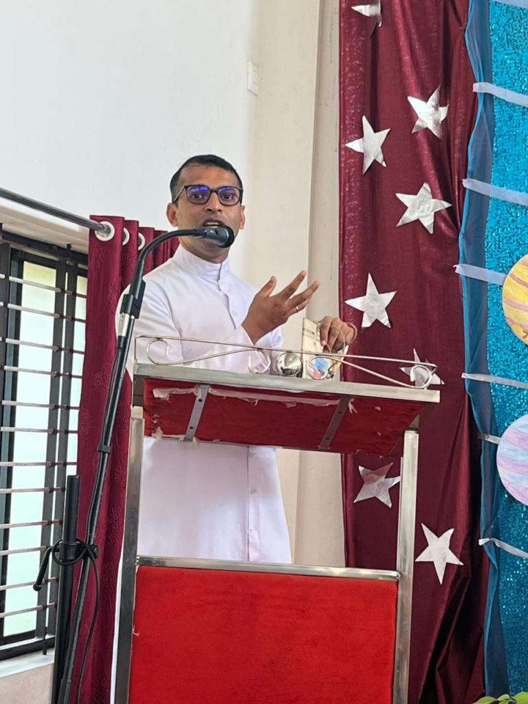 Principal Rev. Fr Jason Vijay Monis advised students not to waste valuable time on social media. Instead, he encouraged them to use that time productively by gaining knowledge, developing interests, and implementing innovative ideas. He urged students to focus on meaningful learning and creative thinking.