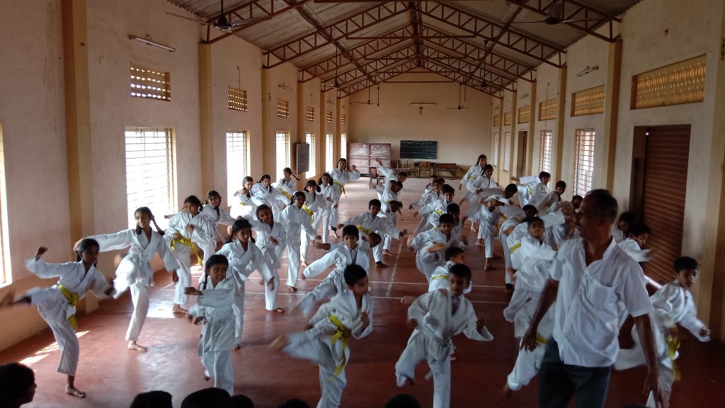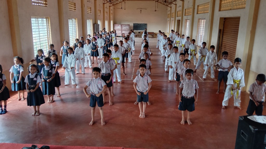 Karate Classes is been organised in the school from past two years. Per year 32 classes were given to the High School and Primary section separately. Mr Jerald Fernandes who is the member and trainer of YAMATO SHOTOKAN KARATE ACADEMY (R). The students participate in various Karate events organised by the Department and Private Academies and have won the prizes and trophies. The students will appear for the exam every year and get the belts accordingly.